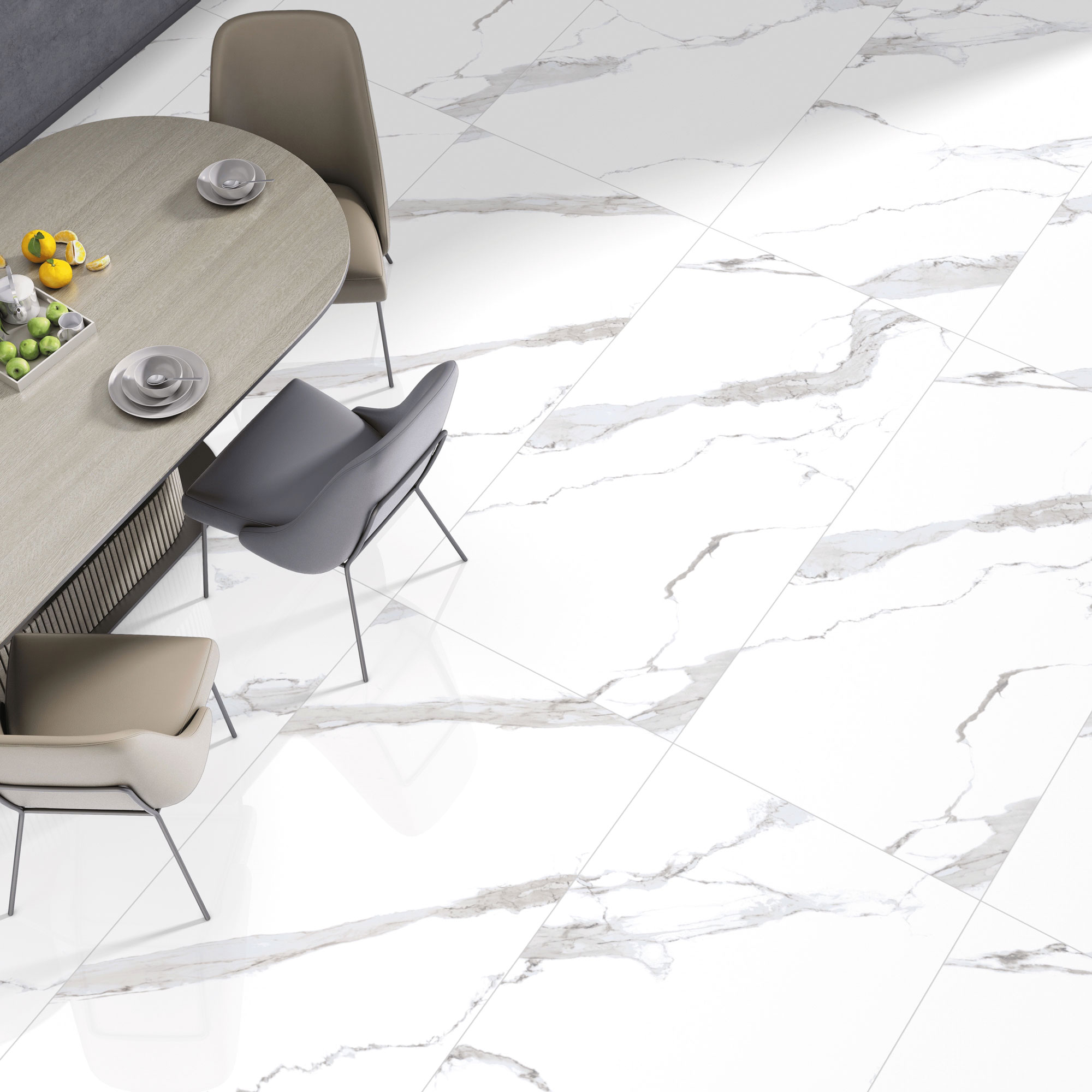 Carrara White offers a soft matte surface inspired by classic marble elegance, creating a refined and timeless appeal. Its rectified edges ensure a precise and seamless installation.