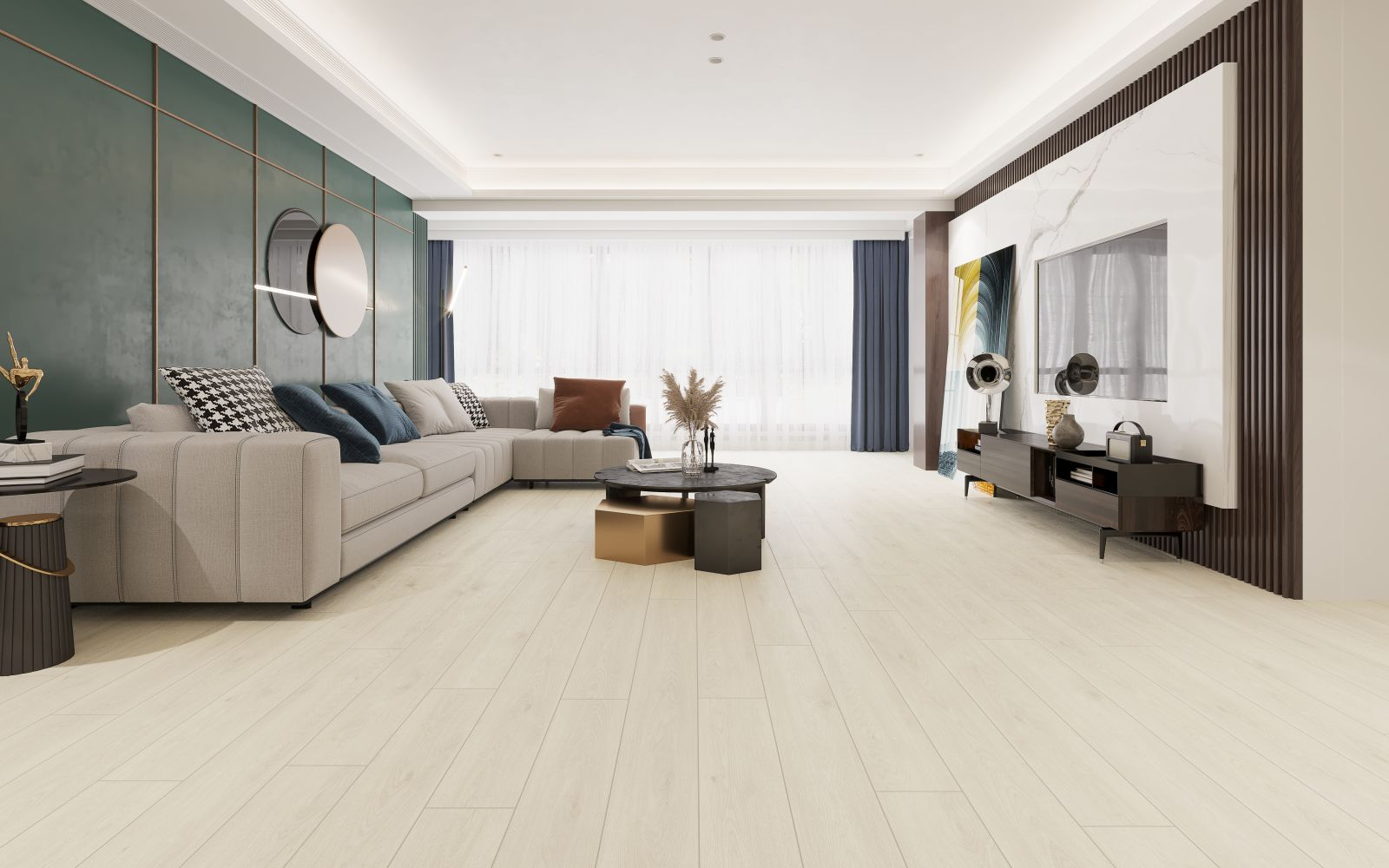 Bambino Ocean Breeze SPC features a light oak tone with a wood-grain embossed finish and painted bevel edges. The 5mm plank includes an antibacterial acoustic pad for added comfort and quiet performance. Designed for floating installation, it’s durable enough for both residential and commercial spaces.