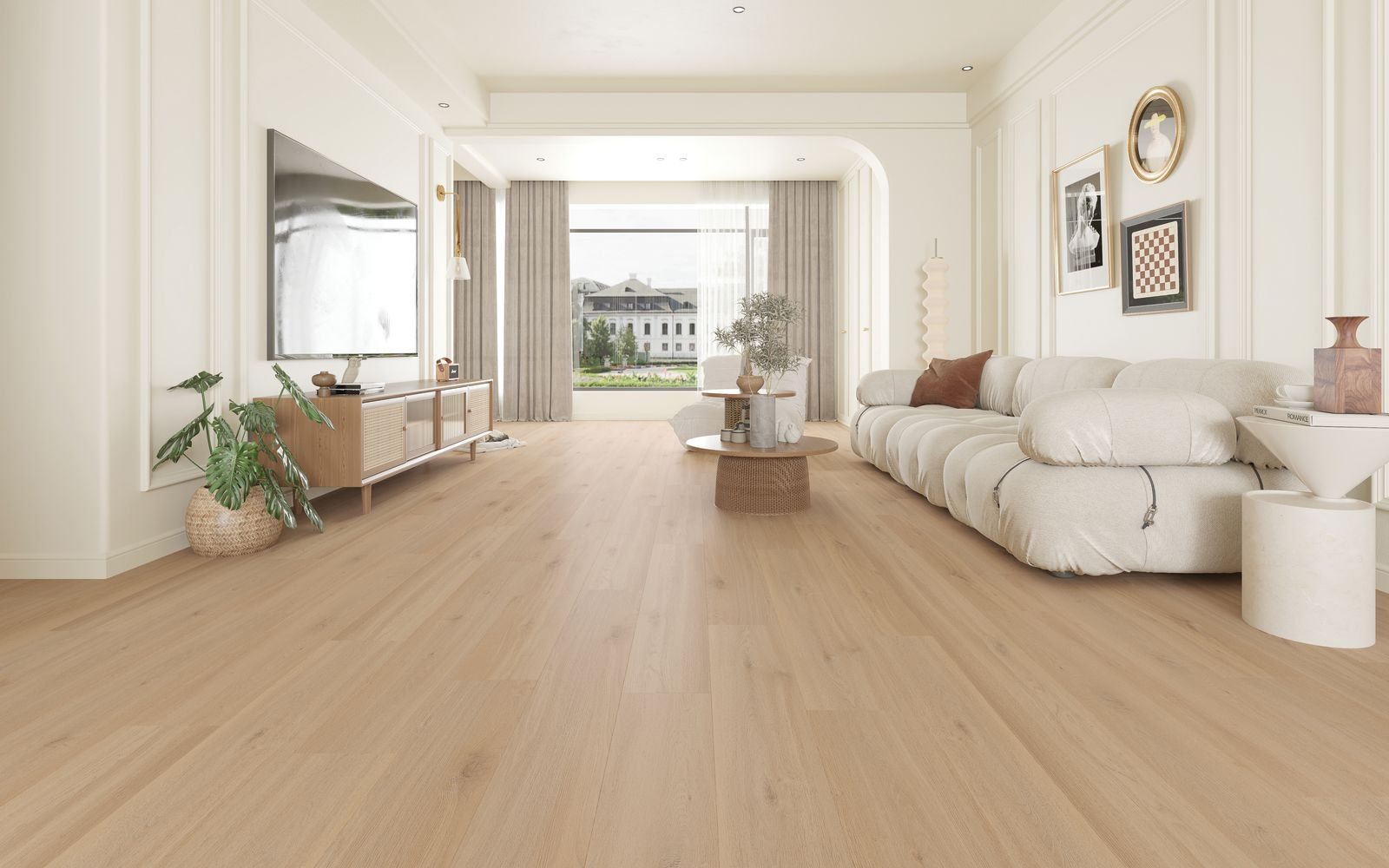 District Pro East Aspen LVP features a medium oak tone with realistic wood-grain texture and square edges. Its 2mm thickness and UV aluminum oxide coating provide durability for residential and commercial glue-down installations.