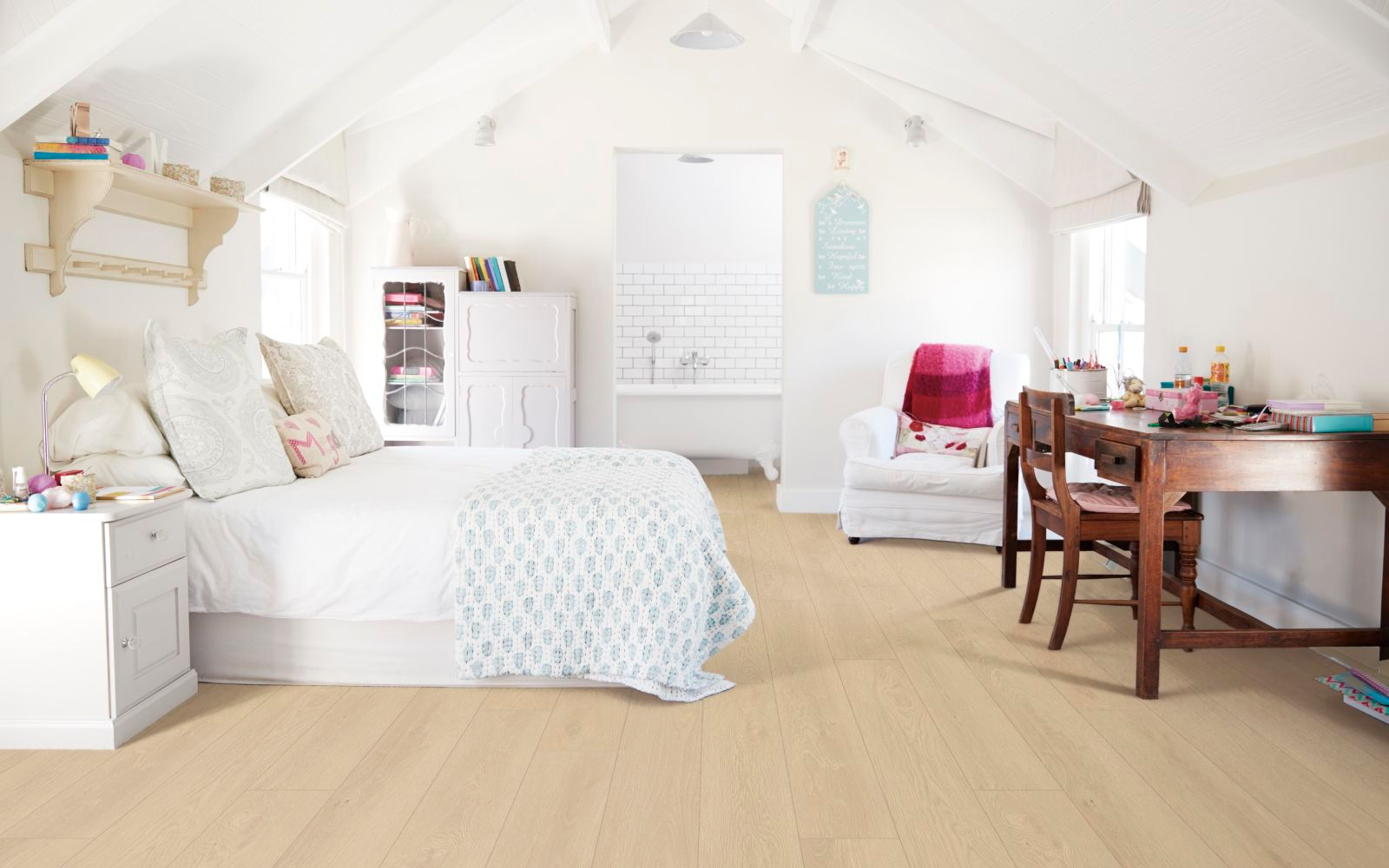 Seaside Summit Beach Blessing WPC flooring features a bright, light oak tone with realistic EIR texture and painted bevel edges. Its antibacterial and acoustic attached pad adds comfort and quietness, making it ideal for any residential or commercial space.