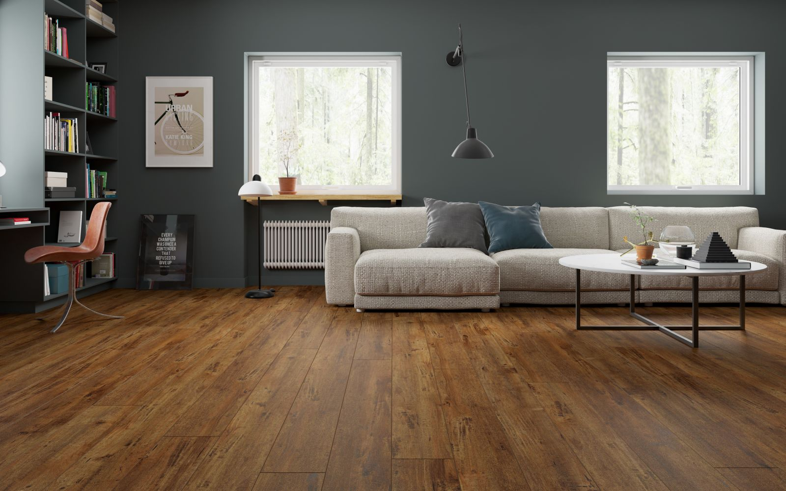 Lone Star Spirit Chocolat SPC flooring features a medium pine tone with EIR wood-grain embossed surface and painted bevel edges. Comes with antibacterial acoustic padding for comfort and sound reduction. Ideal for residential and commercial spaces with easy floating installation.