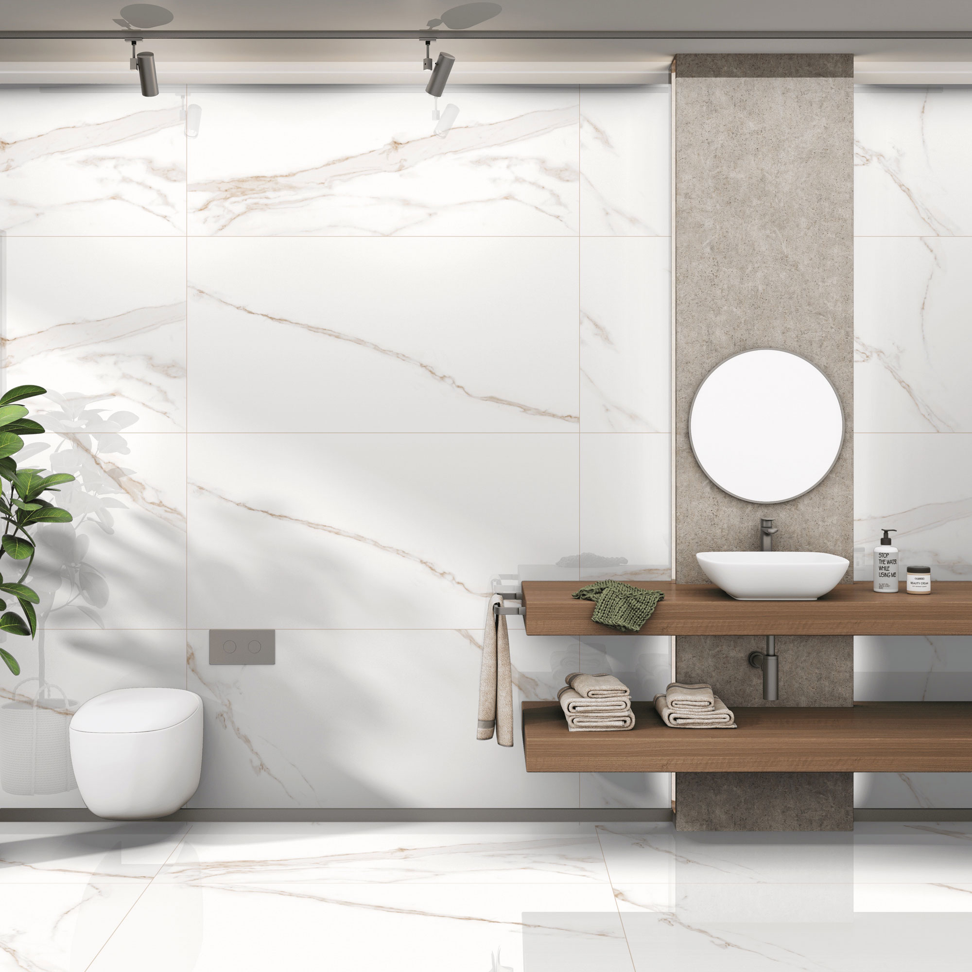 Statuario Gold features a luxurious polished surface with elegant golden veining, adding sophistication and brightness to any floor or wall. Its rectified edges ensure precise installation and a seamless, refined finish.