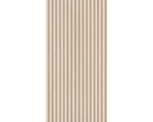 Urbanslat Flute Maple Wall Tile features soft beige maple hues with a fluted, wavy texture and refined strip-pattern detailing. The 16” x 48” tiles offer a matte finish and minimal grout lines, perfect for kitchen backsplashes, bathroom accent walls, or feature walls in residential and commercial spaces.